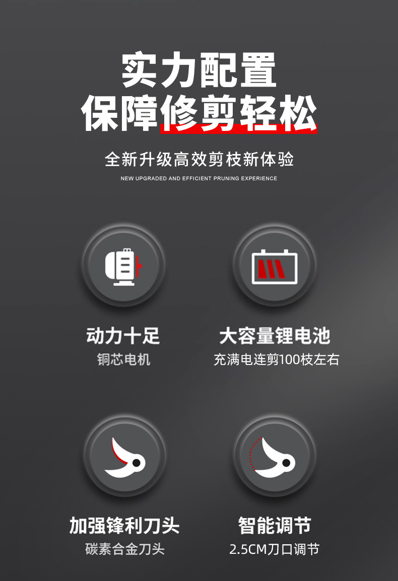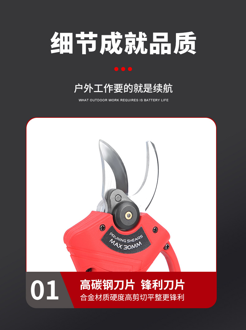 行家选跨境电动修枝剪户外园林果树电动剪刀锂电便携手持电剪刀 1件