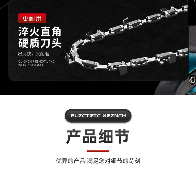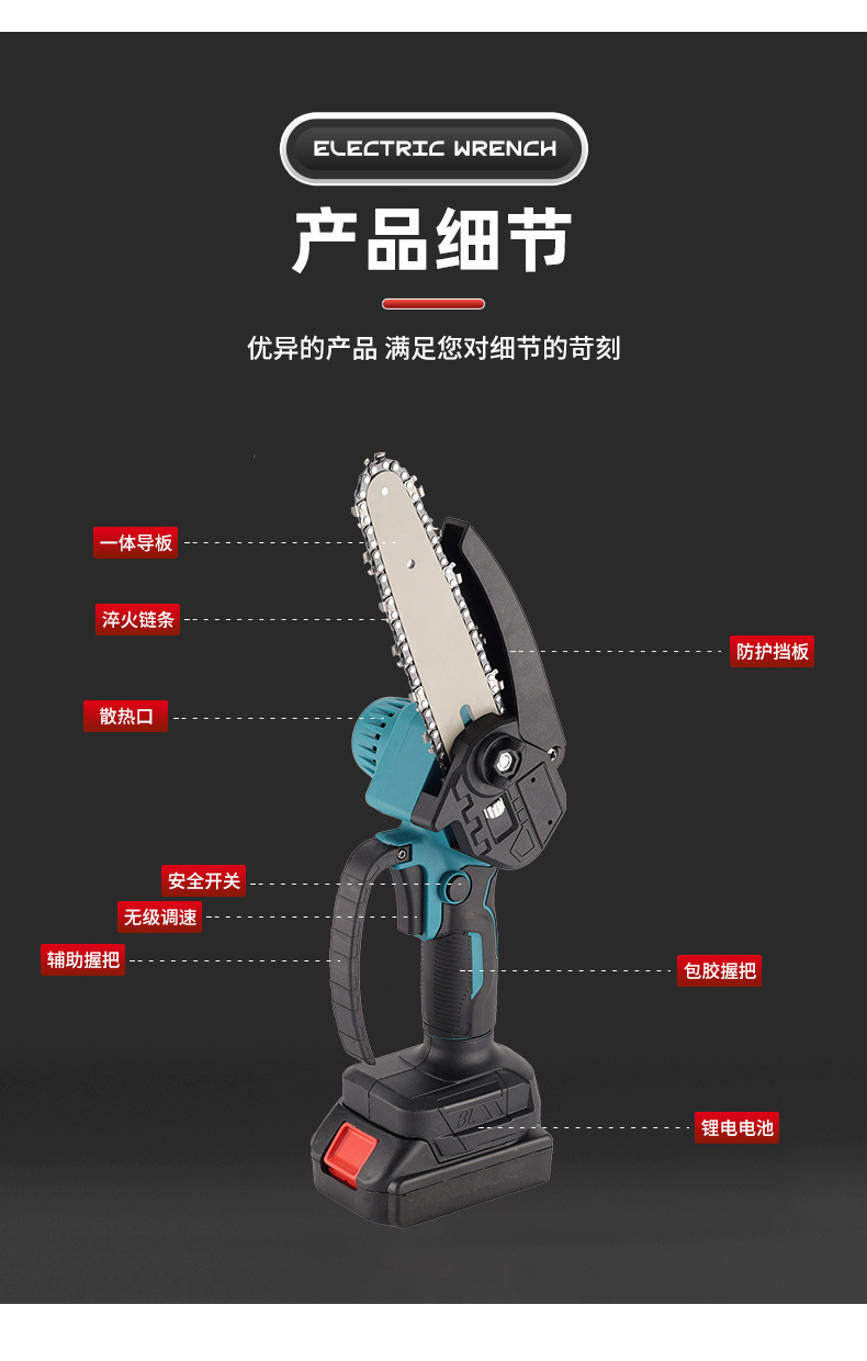 跨境多功能6寸电链锯园林木工修枝锯外贸无刷带油壶免调节锂电锯 1台