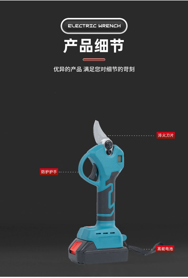 跨境多功能锂电修枝剪外贸果树电剪刀园林树木粗枝剪电动修枝剪 1套