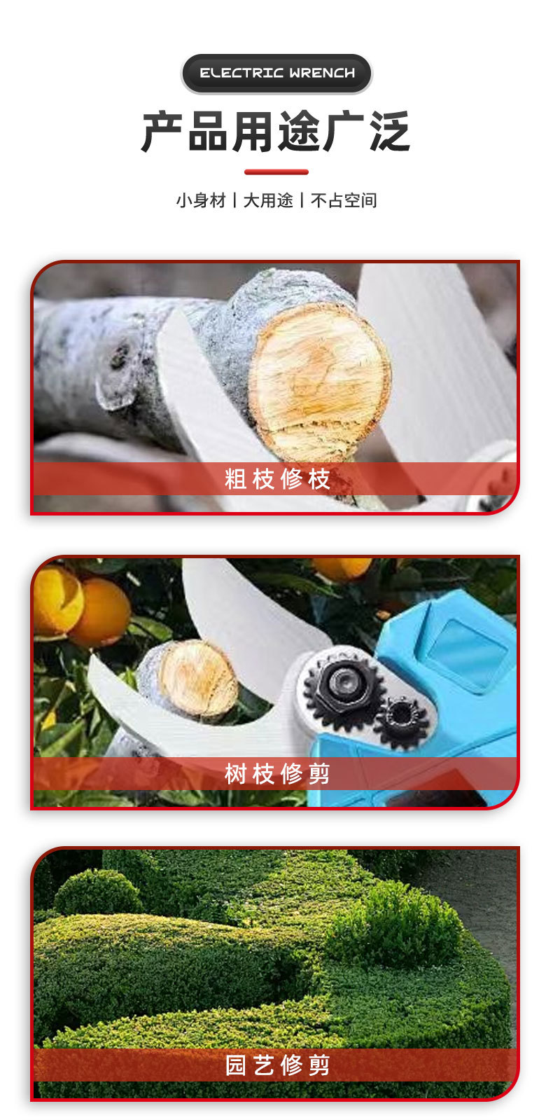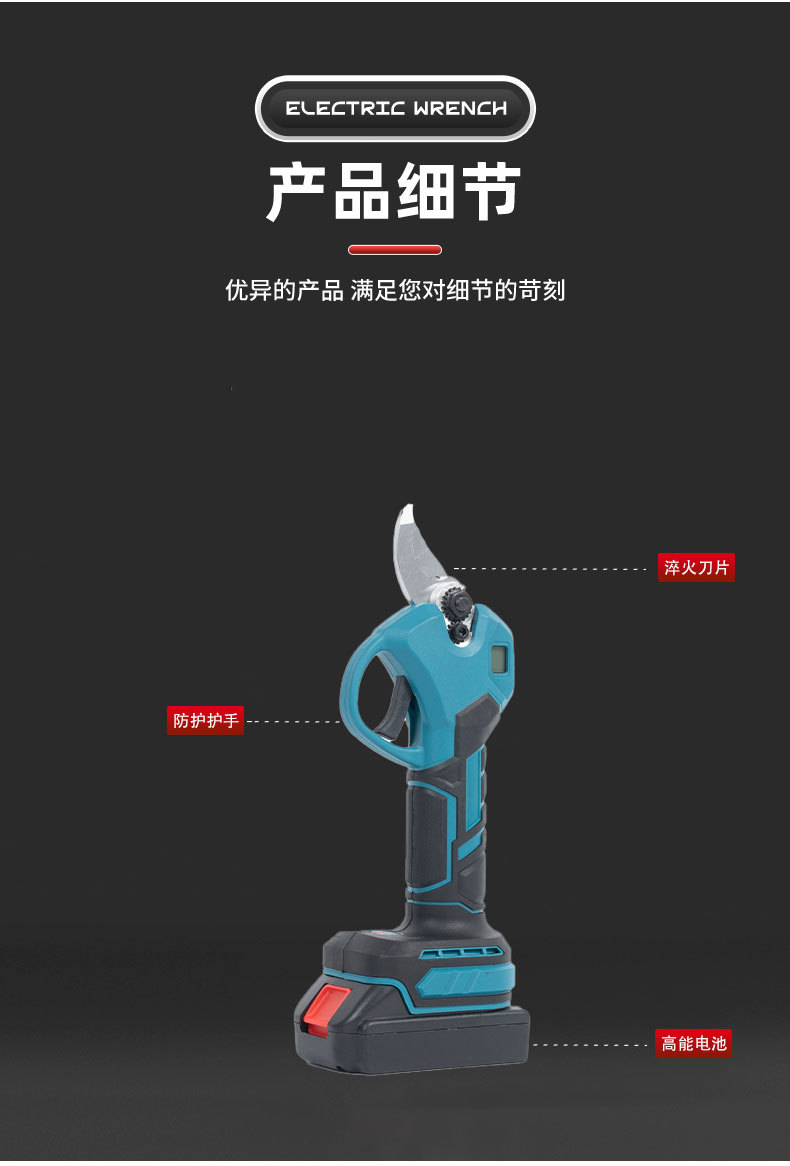 跨境多功能锂电修枝剪外贸果树电剪刀园林树木粗枝剪电动修枝剪 1套