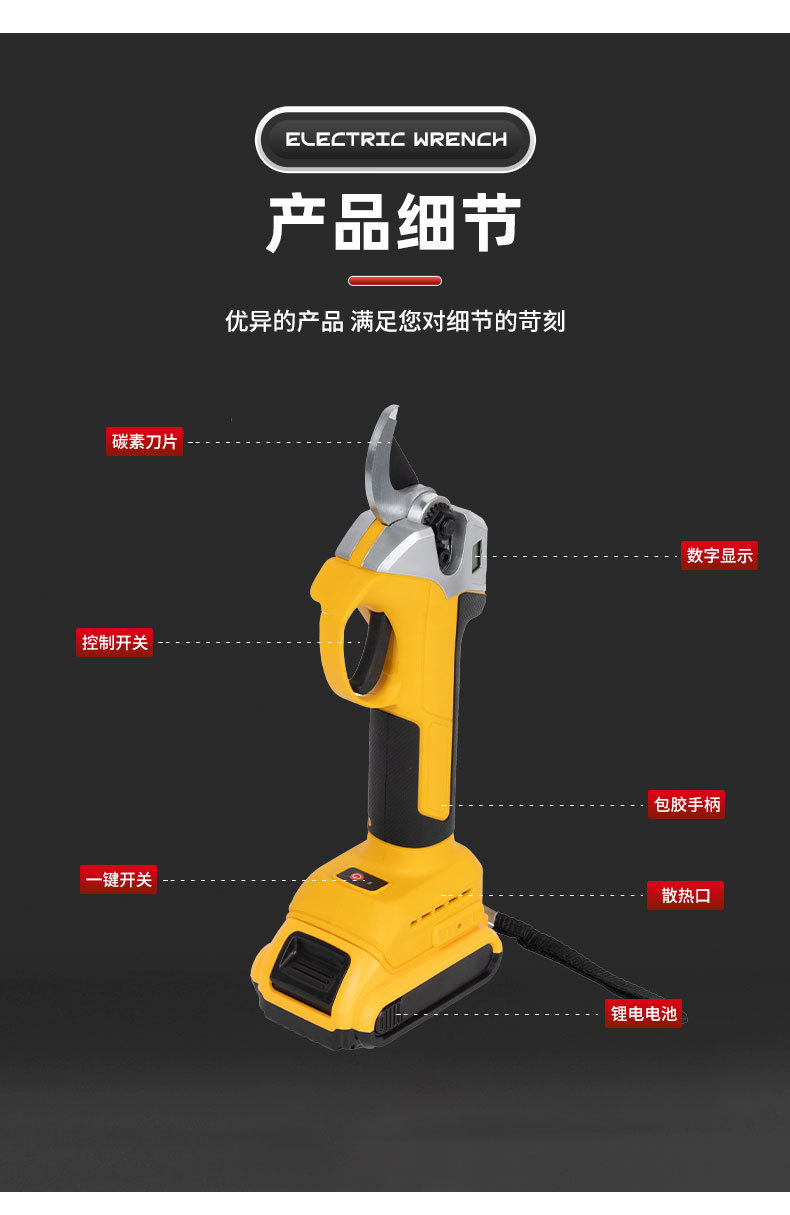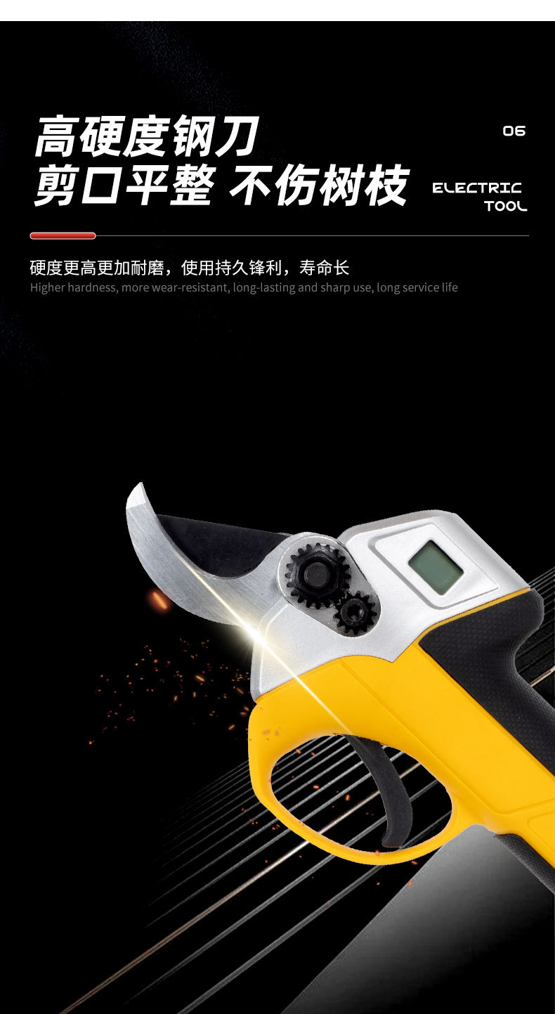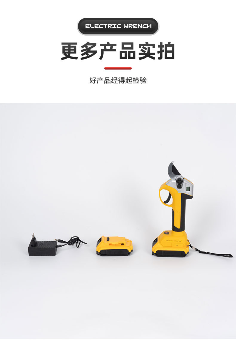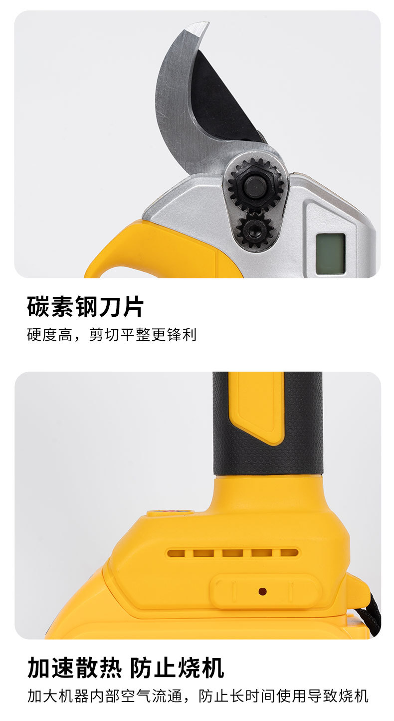 跨境多功能3.0开口锂电修枝剪外贸大功率园林果树数显款修枝剪刀 1套