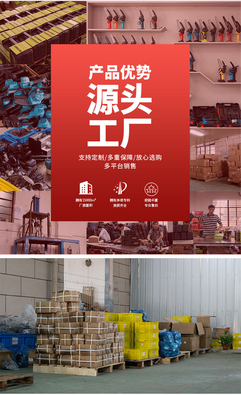 跨境多功能6寸电链锯园林木工修枝锯外贸无刷带油壶免调节锂电锯 1台