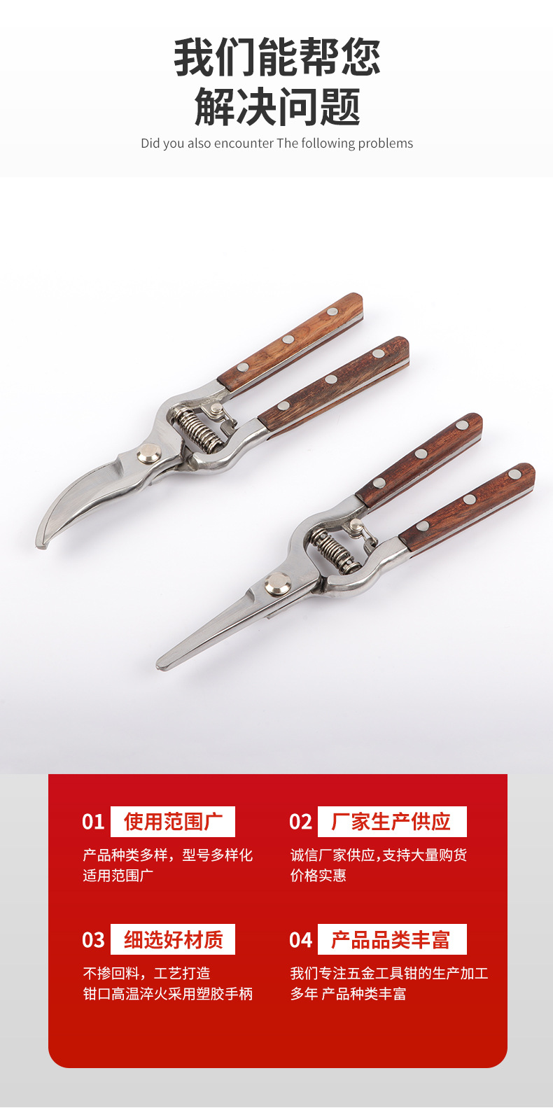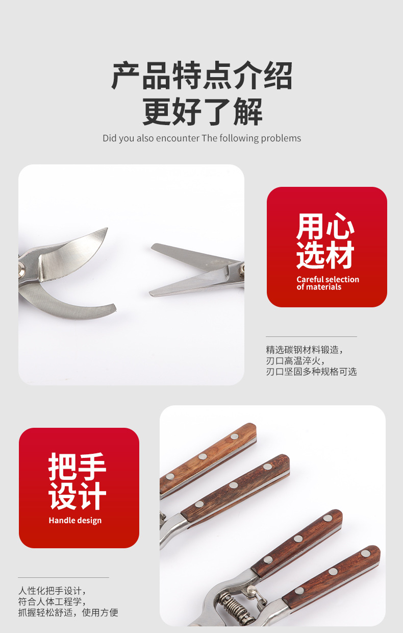 复古木柄剪现货实木防滑摘果剪锰钢园艺修枝嫁接剪枝去刺园林剪 10把
