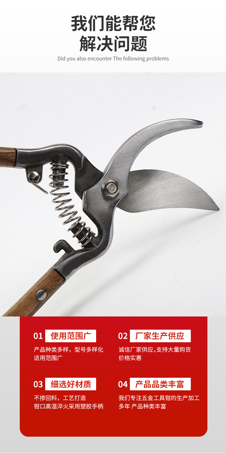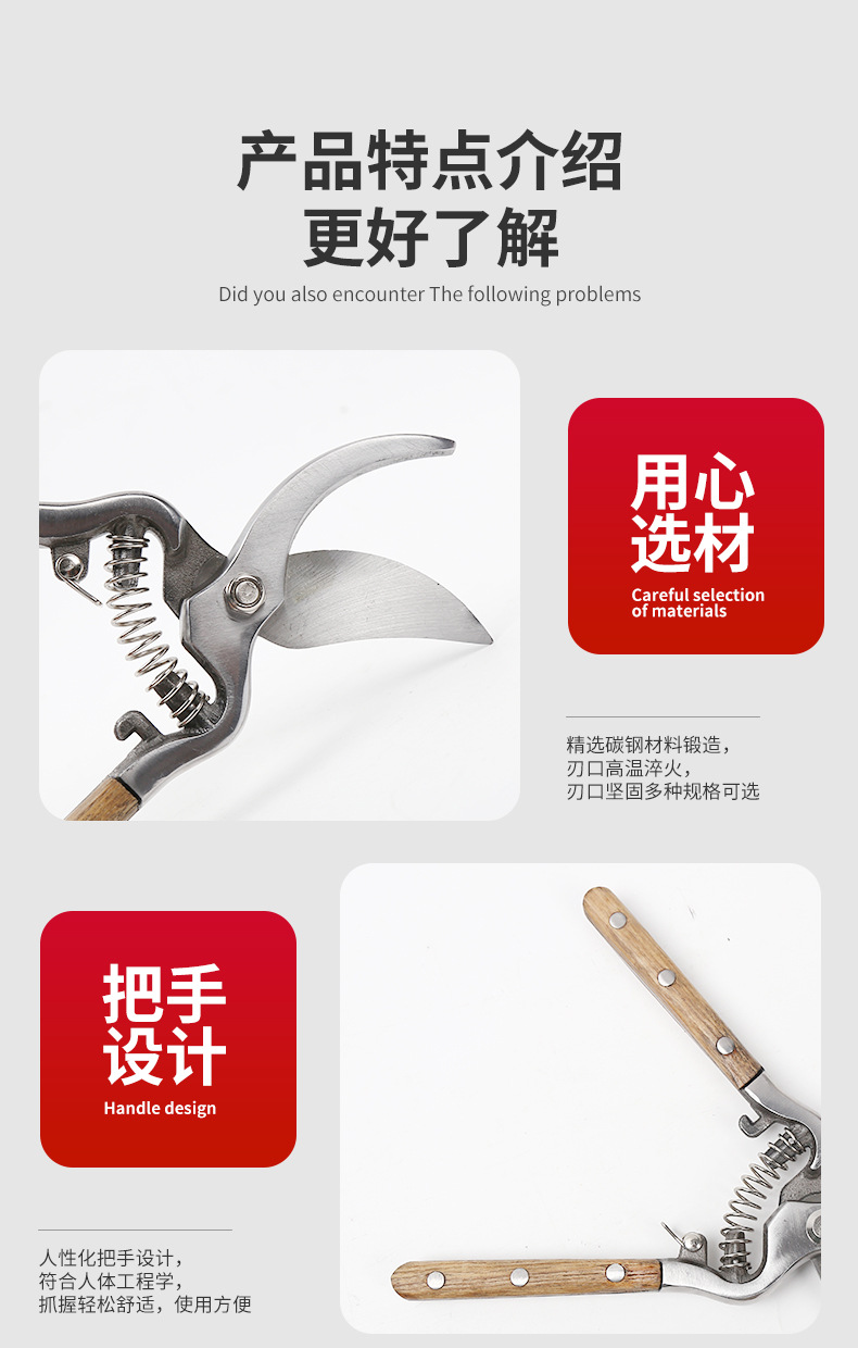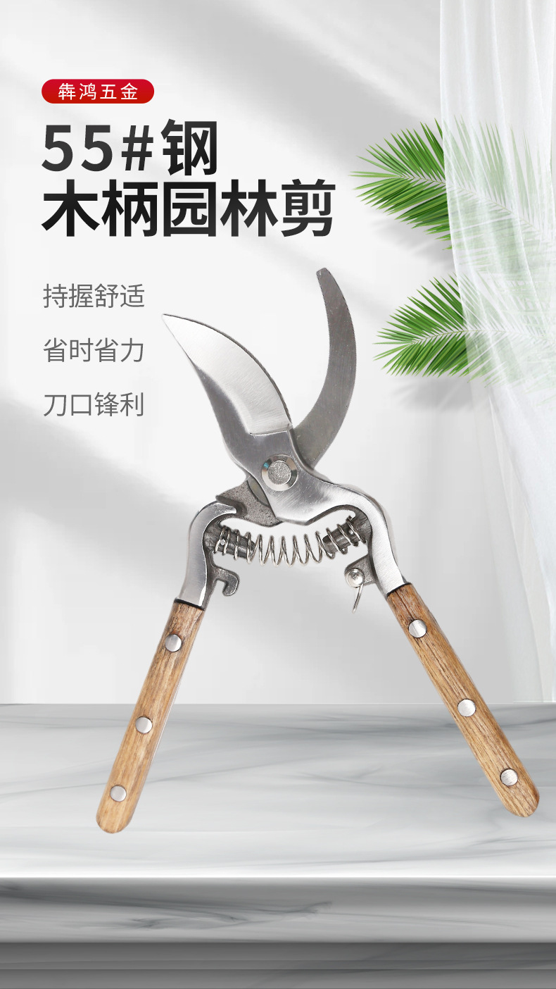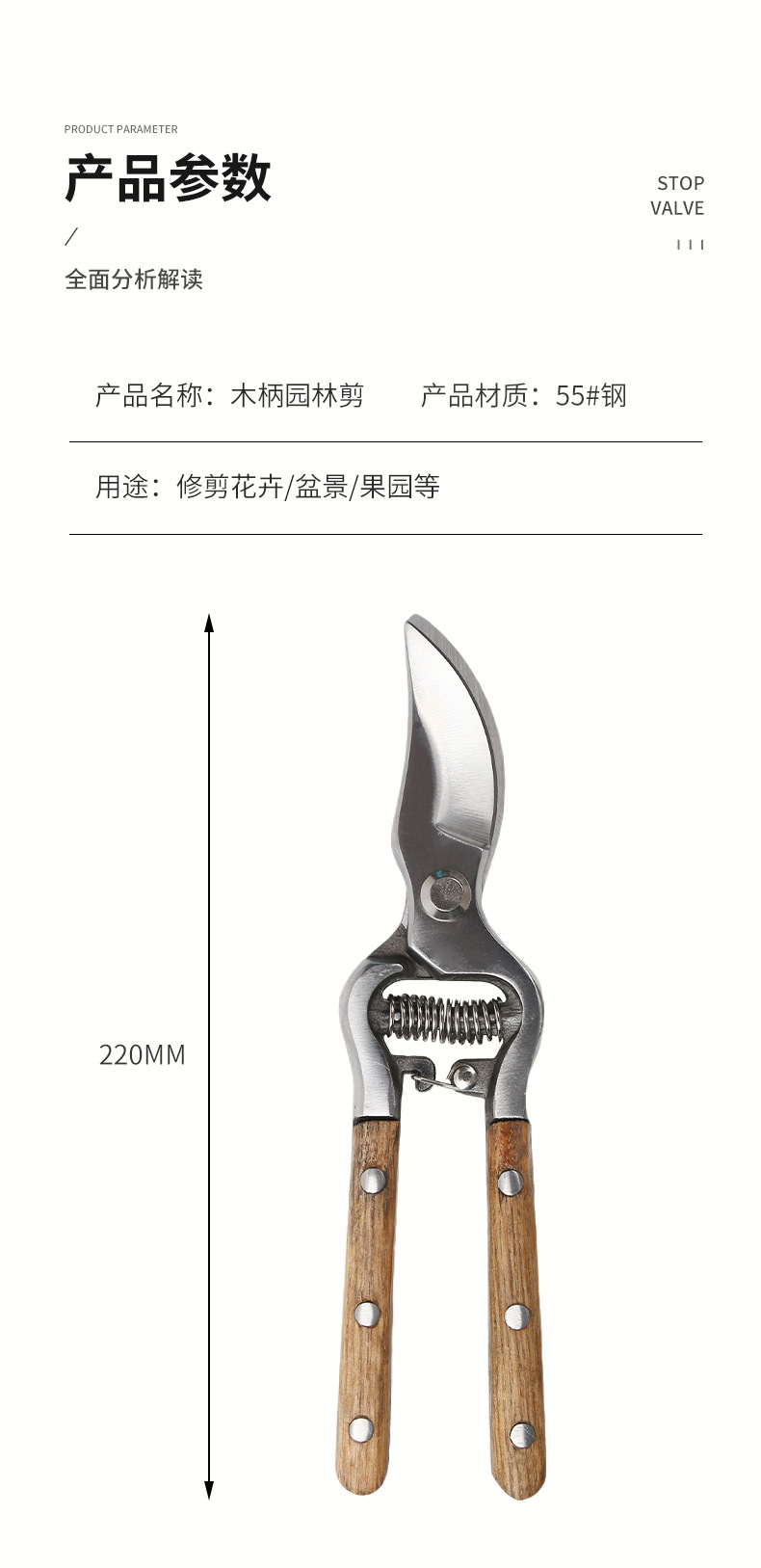 木柄园林剪批发修枝剪树枝剪园林工具果树修剪复古实木柄园林剪 1把