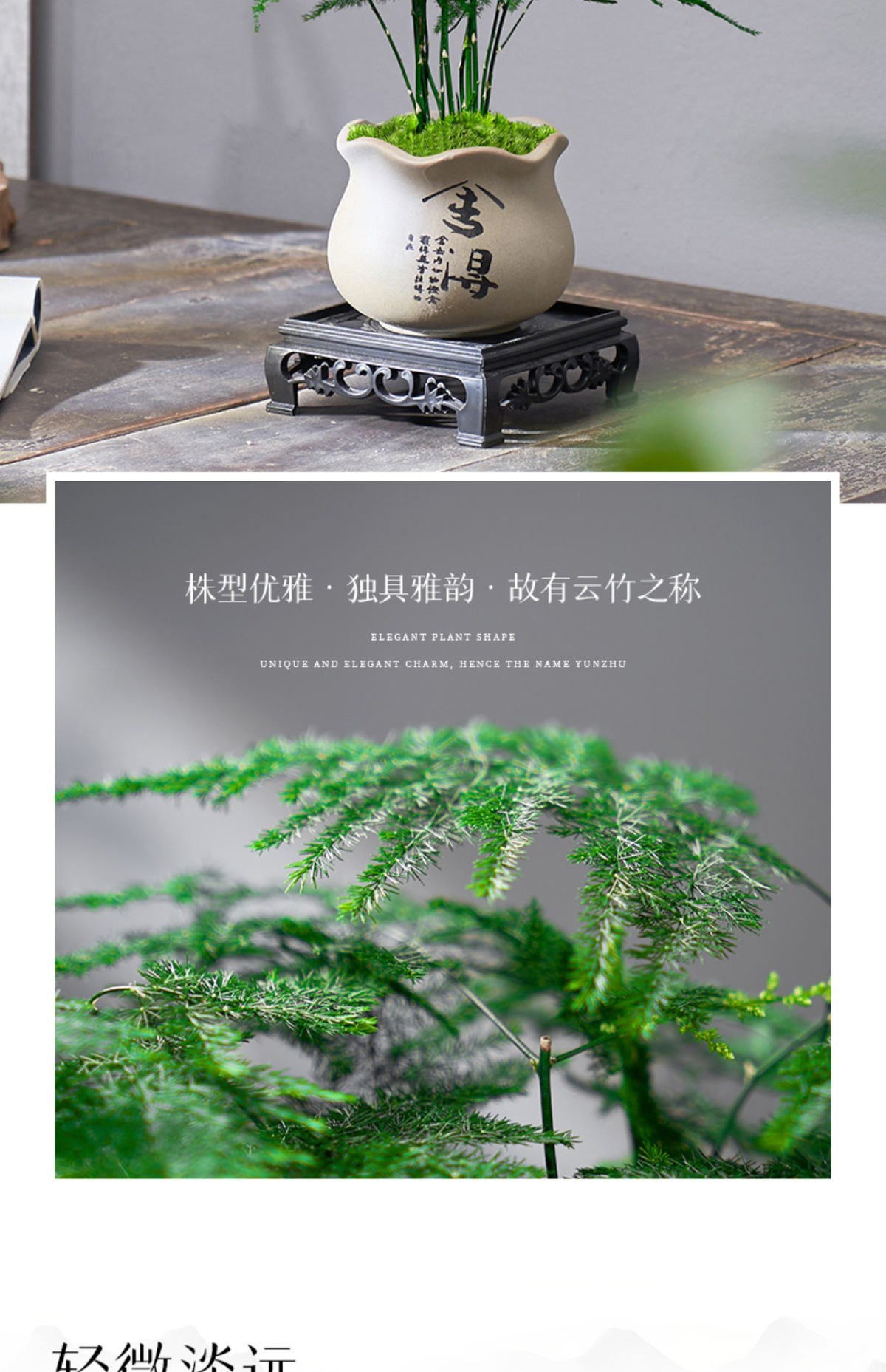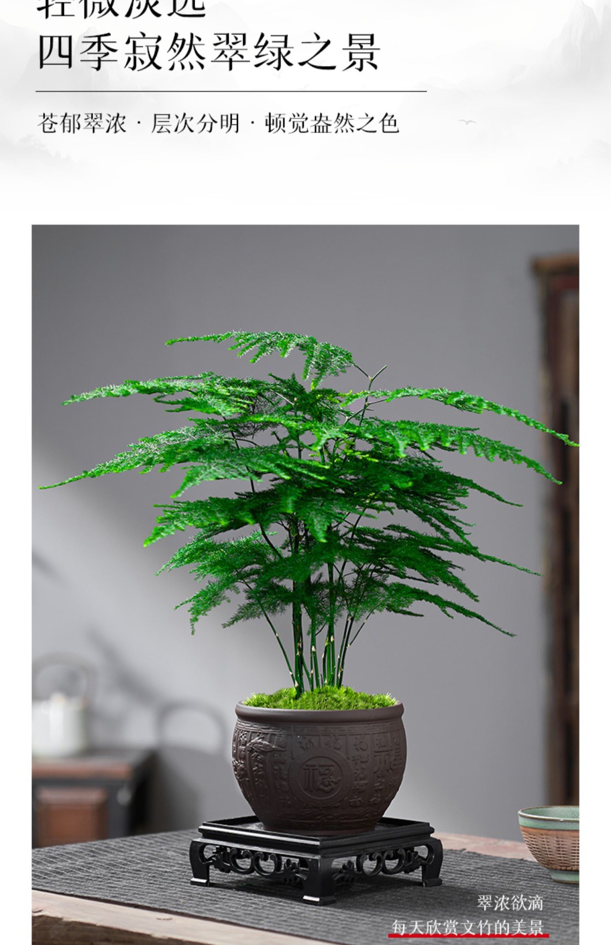 文竹盆栽植物室内客厅中式禅意微盆景办公桌面花卉小绿植创意盆景 1件