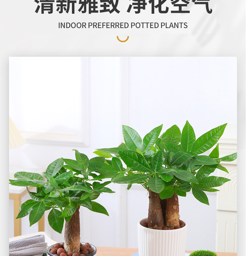 三杆发财树盆栽易活植物室内客厅小盆景四季常青办公室内盆栽花卉 1件
