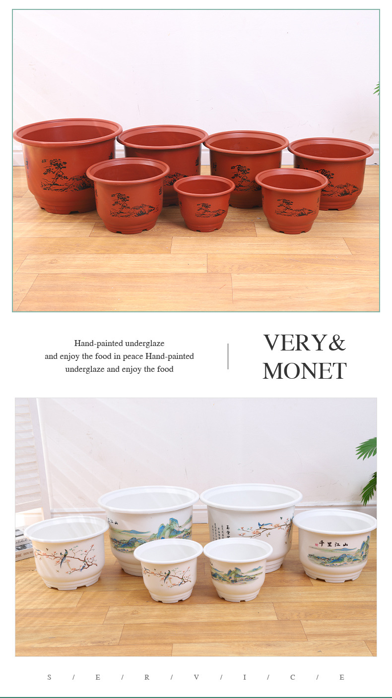 财源广进花盆 厂家直售塑料花盆大口径花卉盆养花庭院居家花盆 2个