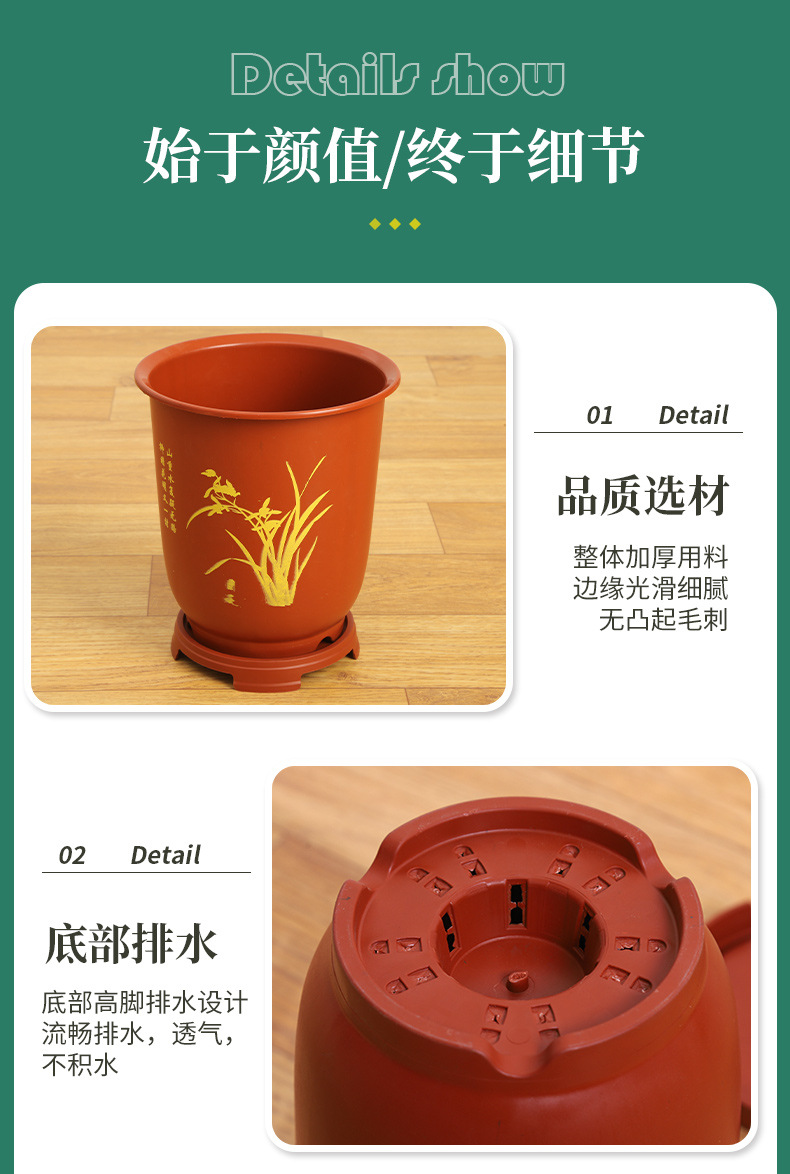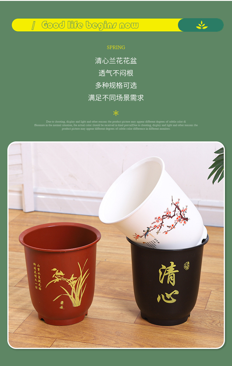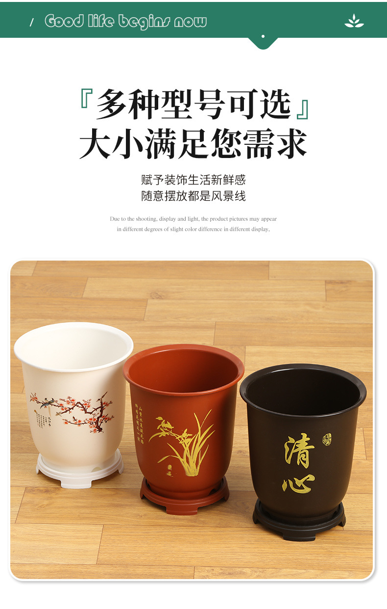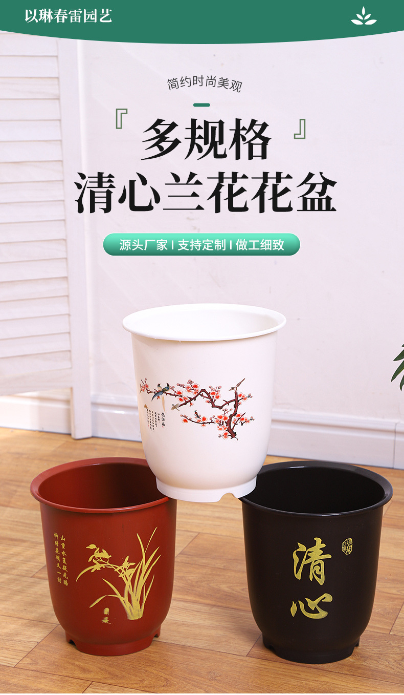 清心兰花花盆PP树脂塑料简约带底座月季金桔玫瑰花养殖鉴赏长花盆 1个