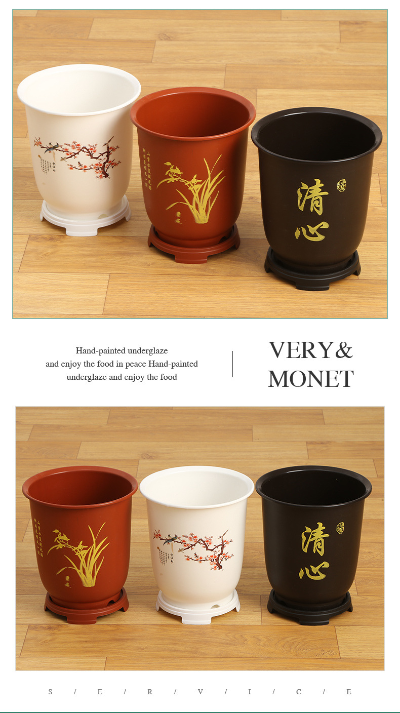 财源广进花盆 厂家直售塑料花盆大口径花卉盆养花庭院居家花盆 2个
