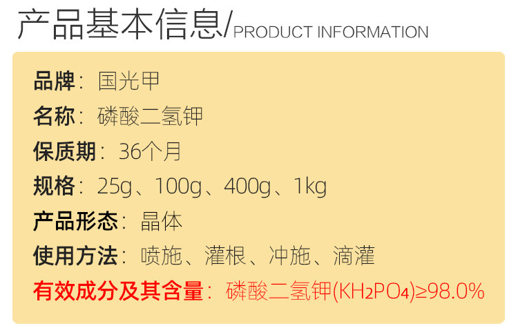 国光钾国光甲磷酸二氢钾蔬菜家用花卉肥通用肥钾肥磷肥叶面肥25g 1袋